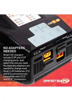 With up to 200W power per channel or 380W on one channel for fast charging, plus the ability to charge batteries on either the IC3® or IC5® integrated output ports, the S2200 charger delivers a versatile and truly hassle-free charging experience. The S2200 charger works with virtually any RC battery and is backwards compatible with EC3â„¢ and EC5â„¢ connectors. Use it together with Smart G1 or G2 batteries and you’ll be amazed by its incredible functionality and performance.